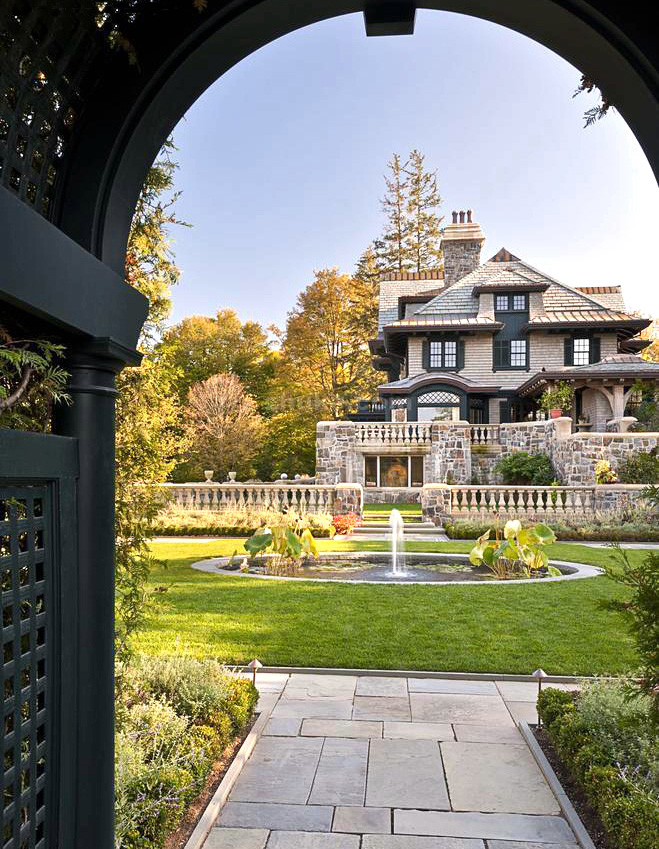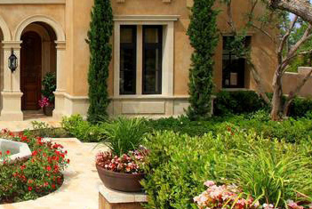 欧式庭院基本上可以说是规则式的古典庭院,它非常庄严雄伟,而且蕴含丰富的想象力。其起源可追溯到古罗马时代。当时,法国人和意大利人设计的这种庭院闻名于世,从而吹响了回归古典的号角。尽管法国和意大利不同,但是它们之间的相似之处还是显而易见的。修剪整齐的灌木和纪念喷泉,是欧式庭院的主要元素。此外,庭院还是有足够空间来建造一些装饰物,如日晷、神龛、供小鸟戏水的柱盆、花草容器等。