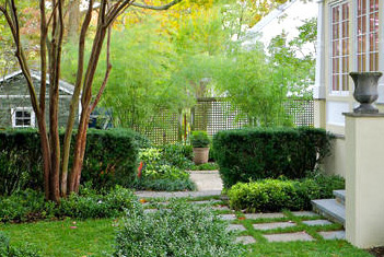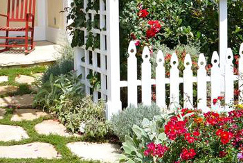 欧式庭院甚少使用色彩,花坛只种颜色单一的同种植物。园木大多为观叶类、灌木类和树木。花坛略带色彩,花草也用得十分稀少,每一个花坛四周都载黄杨,里面只种颜色单一的同类花草。