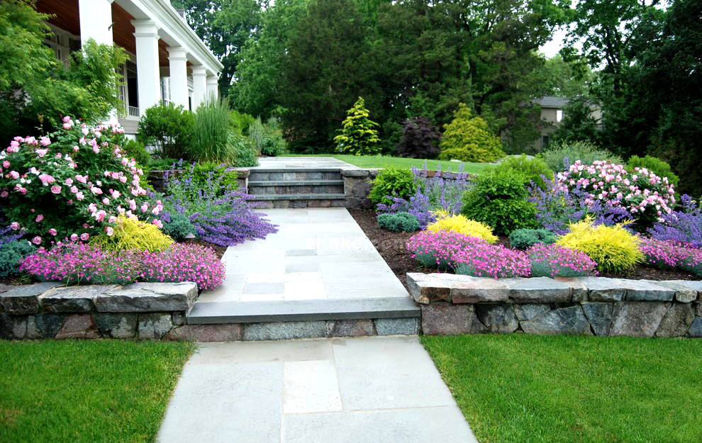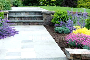 草皮路、碎石路、大理石、条形石块与方形石块相结合,同时石板间可镶嵌小鹅卵石。