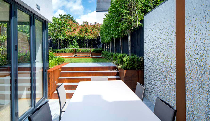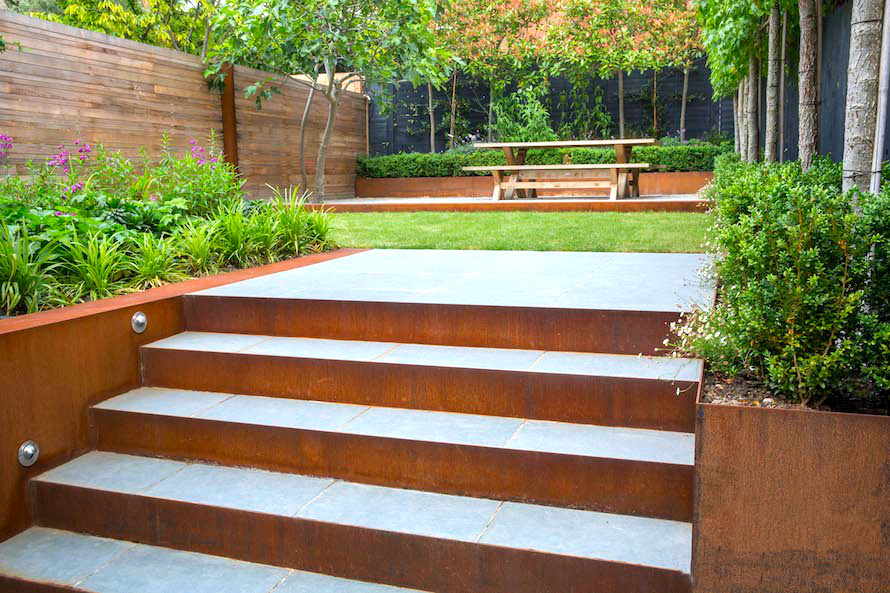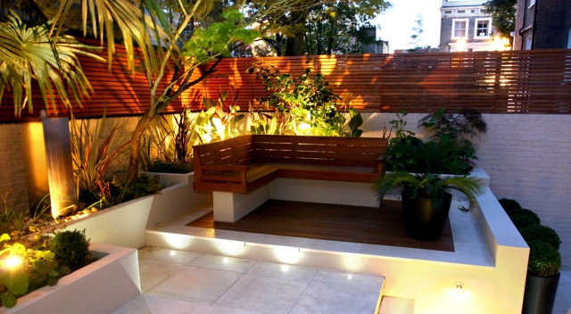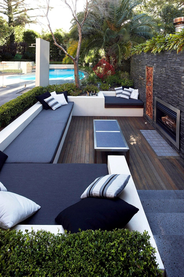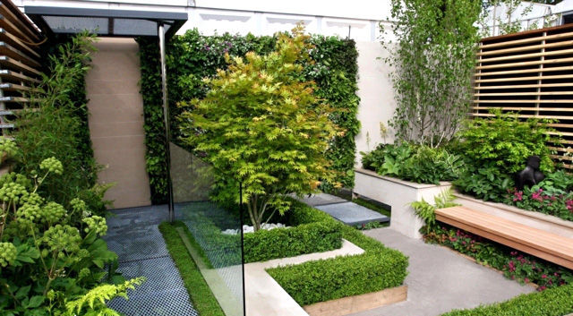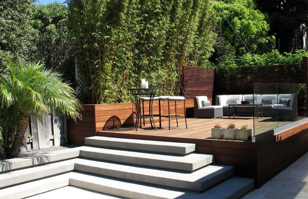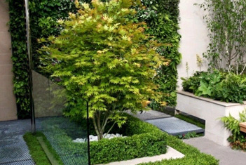 现代风格的庭园属于简约主义的庭院,强调简单的形式,材料都是经过精心选择的高品质材料。此外,创意雕塑品、艺术花盆家具等是这类庭院的主要元素。同时也可以加入一些天然的元素,例如石块、鹅卵石、木板和竹子等。