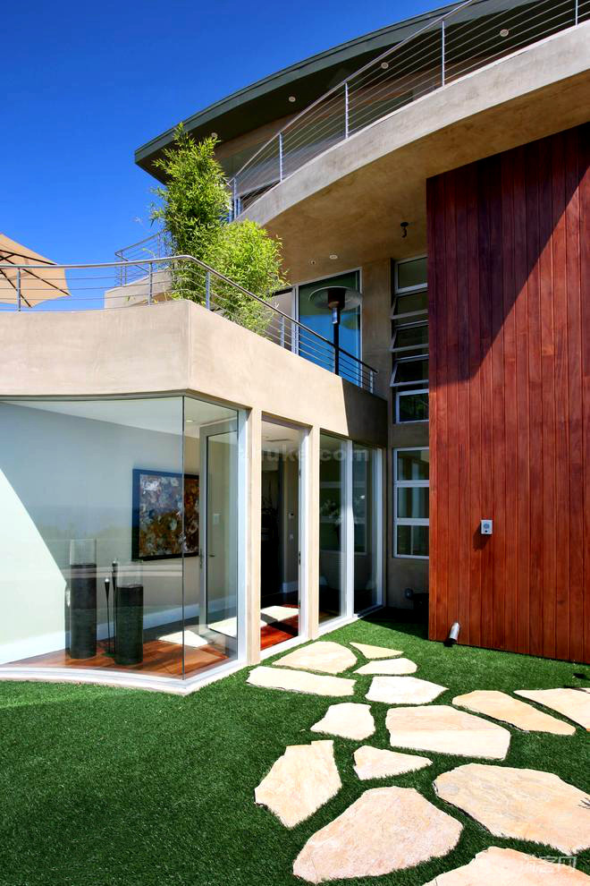 现代风格庭院,主要是通过新材料的引用,质感的不同,小品色彩的大胆对比,简单抽象元素的加入等,突出庭院的新鲜时尚超前感。