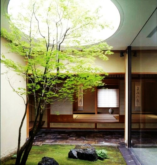中国传统的庭院规划深受传统哲学和绘画的影响,甚至有“绘画乃造园之母”的理论,最具参考性的是明清两代的江南私家园林。此时期的园林代表作品可推无锡寄畅园、苏州拙政园、扬州影园,其审美特点是“接近自然”。中式庭院有三个支流:北方的四合院庭院、江南的写意山、岭南园林;其中以江南私家园林为主流,重视寓情于景,情景交融,寓义于物,以物比德,人们把作为审美对象的自然景物看作是品德美,精神美和人格美的一种象征。此时期私家园林受到文人画的直接影响,更重诗画情趣,意境创造,贵于含蓄蕴藉,其审美多倾向于清新高雅的格调。
