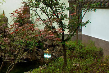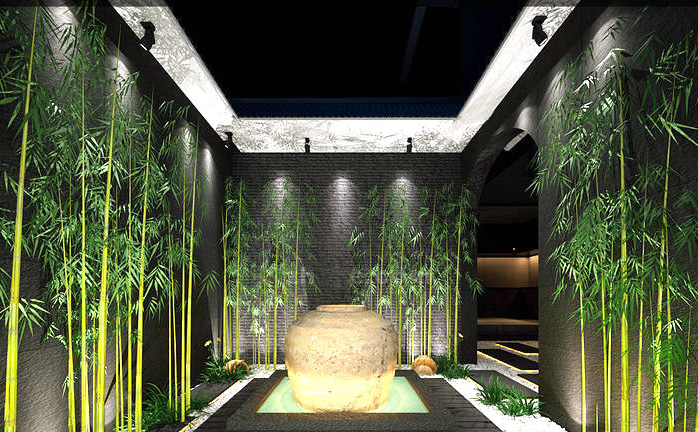 中式庭院景观依地势而建,注重文化积淀,讲究气质与韵味,强调点面的精巧,是追求诗情画意和清幽平淡质朴自然的园林景观,有浓郁古典水墨山水画意境。园景主体为自然风光,亭台参差、廊房婉转作为陪衬,这里寄托园主人淡漠避世、超脱凡俗的思想,在物质环境中寓藏着丰富的精神世界,苍凉廓落、古朴清旷是其美的特征。