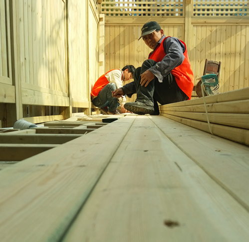 【防腐木施工规范】 1、 初期进行板材选择,要求光滑、基本无裂缝、结疤少,不达标板材坚决不使。