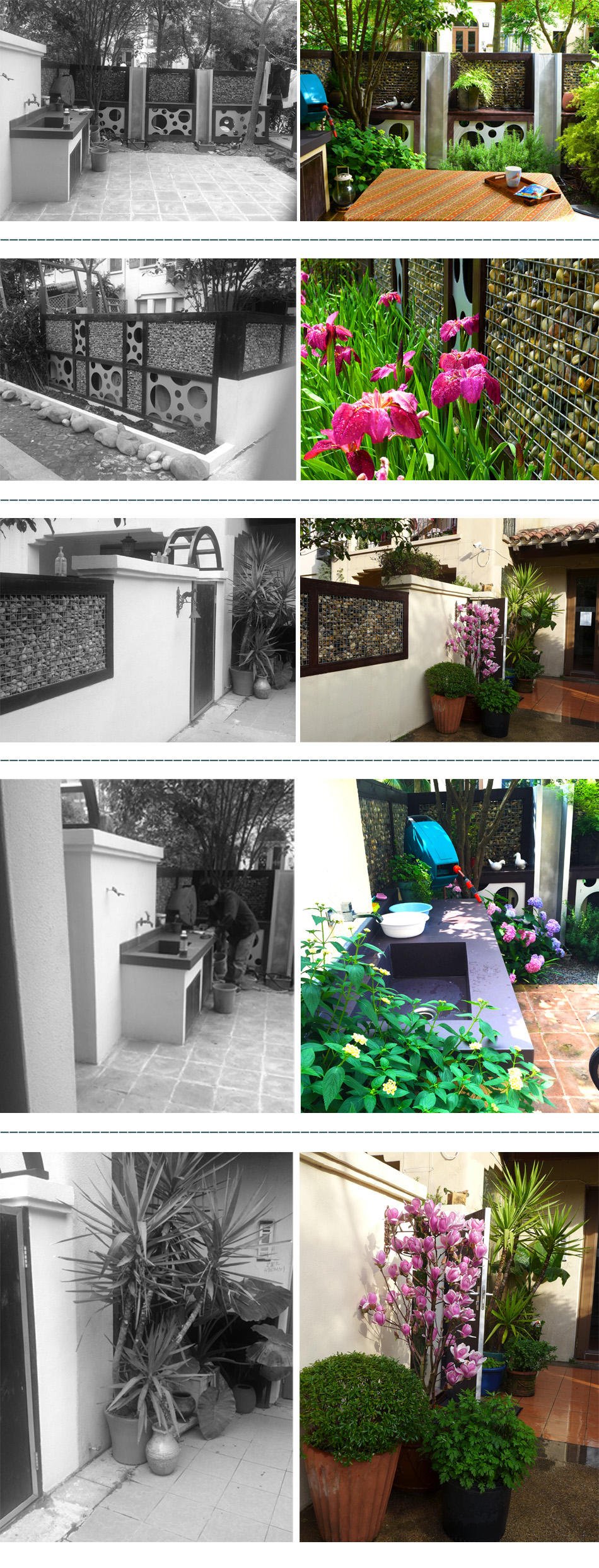 原本僵硬的硬质铺装周围种植优美植物